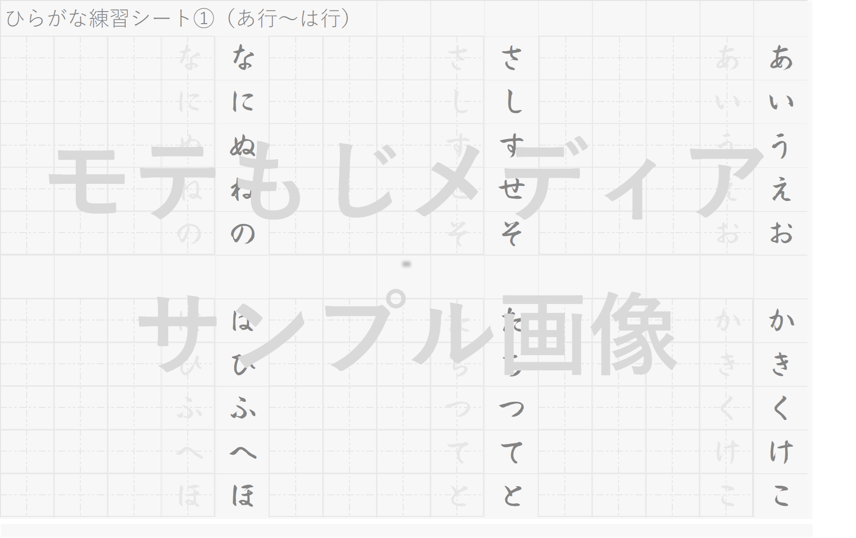 モテもじでは、下記内容の練習シート(PDF)が無料でダウンロードできます。