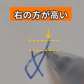 ただし、右側を上げすぎると、文字が傾きすぎて不安定に見えたり、形が崩れてしまったりするため注意が必要です。あくまで“ほんの少し”の差が最も効果的です。