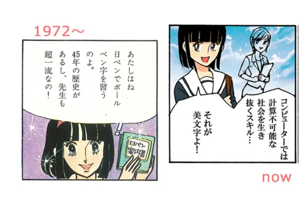 「日ペンの美子ちゃん」は、日ペンのボールペン習字講座のマスコットキャラクターです。