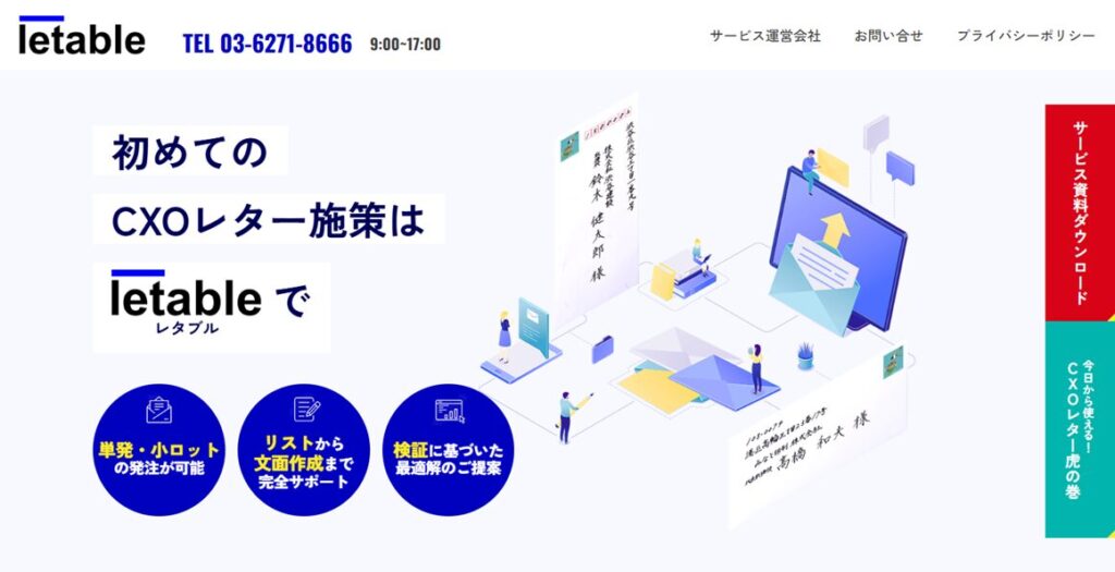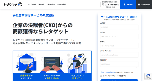 レタルは、セールスライティングに重きを置いた“アポ単価を下げること”を目標にした手紙営業支援を掲げているサービスです。