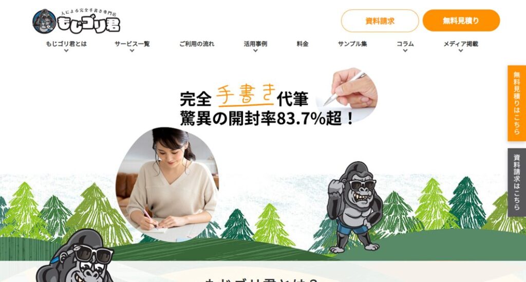 もじゴリ君は、人の筆耕による完全手書き代筆を前提としたサービスで、あたたかみや信頼感を重視する施策に向いています。