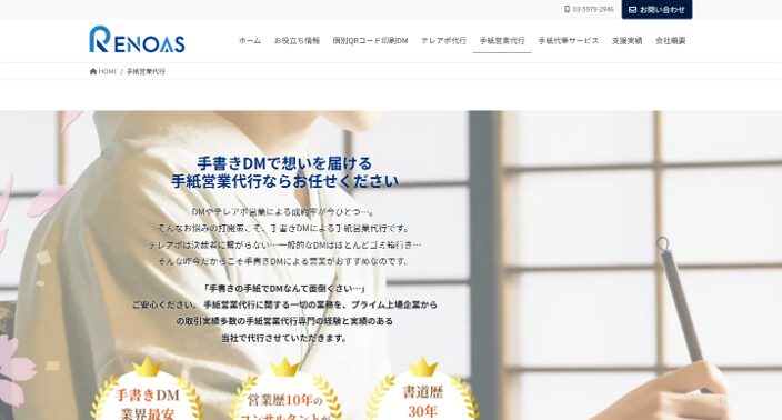 サービス内容 | ・完全手書き ・キーマンリサーチ ・文面パーソナライズ ・送付代行 |