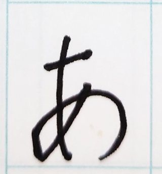 ちなみに、「あ」以外の文字も右上がりにすると字がきれいに見えることが多いので、この点も覚えておきましょう。