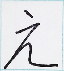 | 1画目 (斜め線) | 左上から右下への短い斜め線 | ・縦線ではなく、やや右下がりに流す。 ・線の角度は30〜40度ほど。 ・軽く反らせて、止めずに抜く。 |